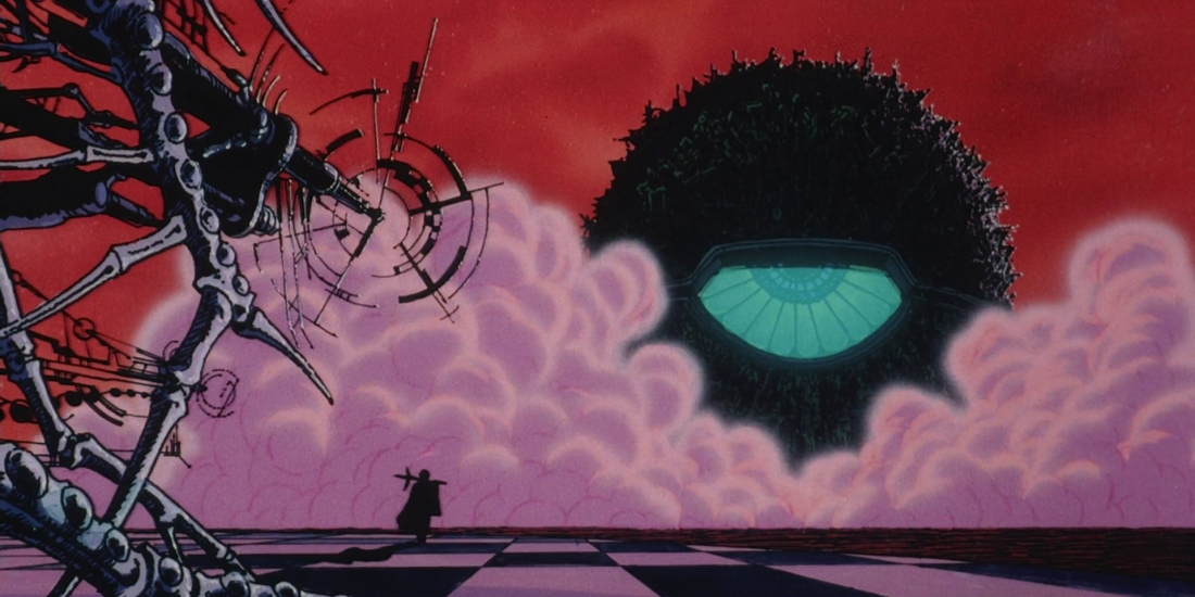 L’uovo dell’angelo (Tenshi no tamago, 1985), diretto da Oshii Mamoru, affronta gli stessi temi mescolando entrambe le prospettive. Protagonista è una bambina che vaga sola nelle rovine intorno a una città distrutta, custodendo gelosamente un uovo. Al suo fianco giunge un guerriero, armato di un fucile a forma di croce, che decide di seguire la ragazzina nel suo viaggio in un mondo grigio e irriconoscibile, ispirato agli spazi metafisici di De Chirico e alle suggestioni oniriche di Salvador Dalì, omaggiati esplicitamente dall’illustratore Amano Yoshitaka. Le uniche tracce di umanità sono alcune statue, memorie di un passato ormai perduto e dimenticato. Anche i protagonisti non hanno memoria, non conoscono il loro passato, né perché sono giunti fin lì. In uno dei dialoghi più affascinati del film, al guerriero viene affidato un racconto apocalittico che riscrive il diluvio biblico di tradizione ebraico-cristiana: la colomba inviata alla ricerca di terra non tornò, questa volta, e l’umanità rimase sull’arca, dimenticandosi nel corso delle generazioni della colomba, della terra, della propria storia. Una visione sicuramente più pessimista che interrompe la ciclicità della rinascita nel momento stesso della frattura dell’uovo, a cui non segue alcun disvelamento, ma solo la rivelazione, ancora una volta, di un’assenza, uno spazio vuoto e senza tempo.